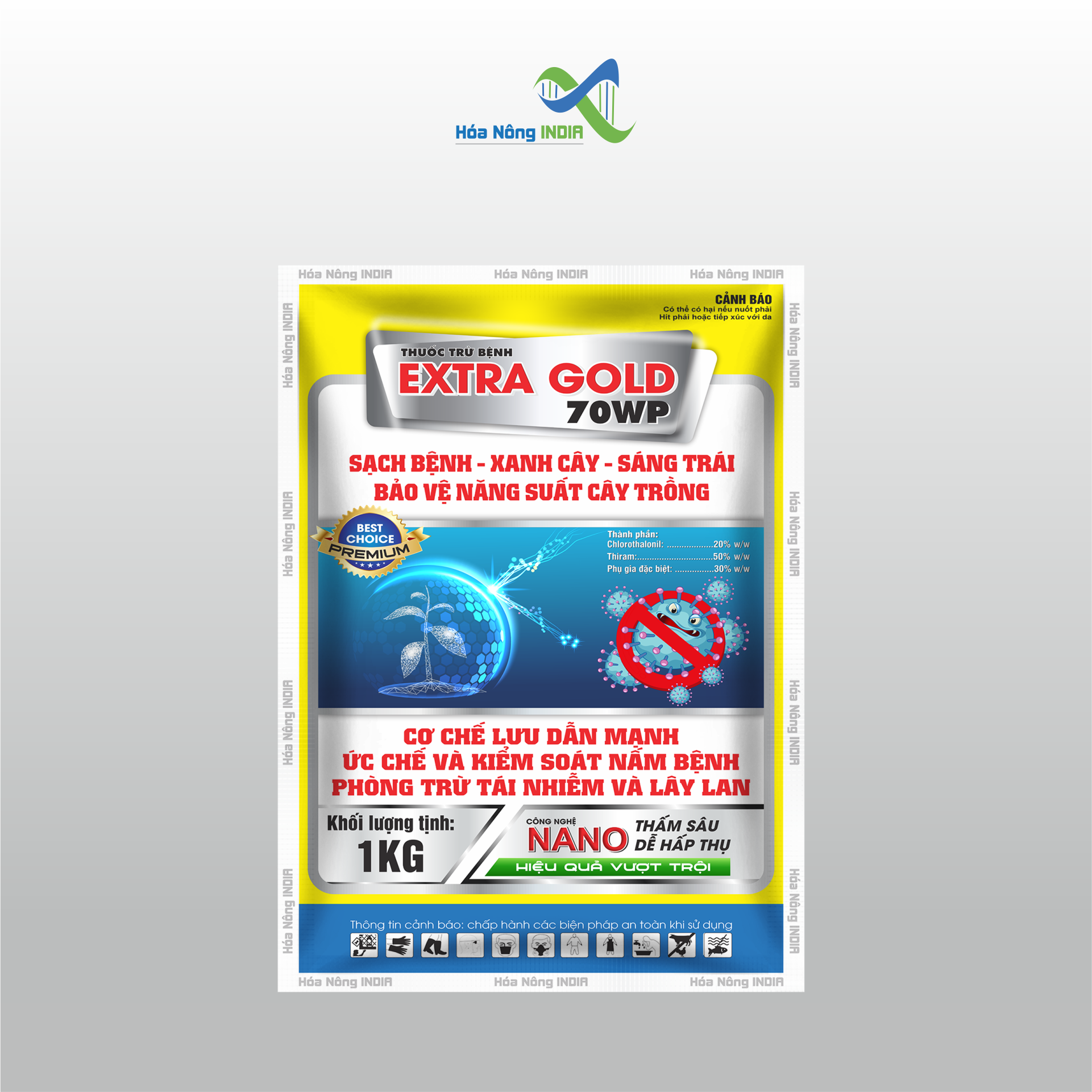 EXTRA GOLD 70WP là thuốc trừ bệnh cao cấp thế hệ mới, được nghiên cứu và phát triển bởi Công ty Cổ phần Hóa Nông India.